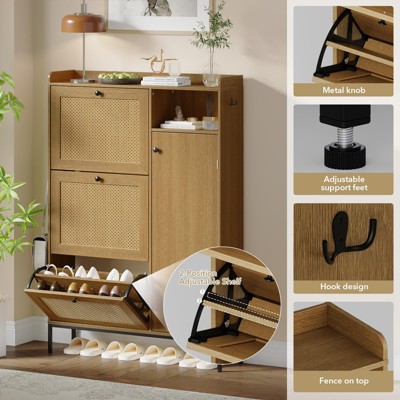 Shoe Cabinet Storage with 4 Flip Drawers, Freestanding Shoe Storage Organizer Cabinet for Entryway, Narrow Shoe Rack Cabinet with 3-Tier Adjustable