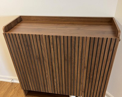 Good size and quality. Holds a lot of shoes! I wear a women’s size 10 shoe and they fit easily in the cabinet. I was able to build it by myself in a few hours and it had really helpful/easy steps at the end to adjust the door hinges so everything was aligned perfectly. I recommend!
