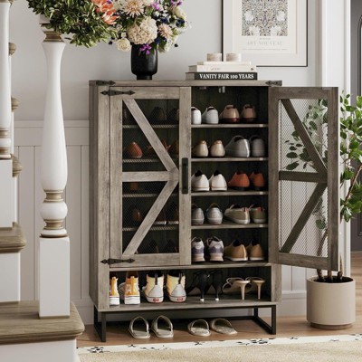 Shoe Cabinet with 4 Flip Drawers, Wooden Shoe Organizer Cabinet with Adjustable Shelf, Shoe Storage