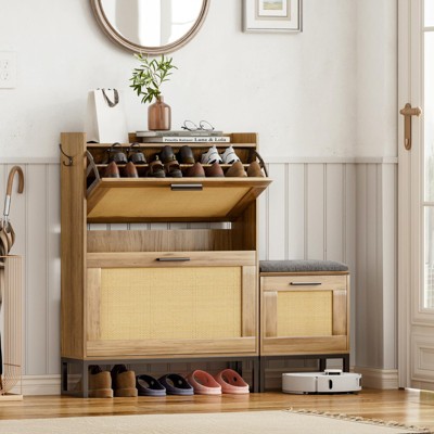 - 【Large Capacity】The shoe cabinet with slipper bar has a large storage space, it can accommodate 18-20 pairs of shoes. The three-layer adjustable shelves can be flexibly adjusted according to your needs. In addition to storing slippers, flat shoes, and sneakers, it can also easily store high heels, boots, knee-high heels, and even shoe boxes. What's more, the spacious countertops and drawers is good to store accessories, wallets, keys and other items to create a neat entrance.