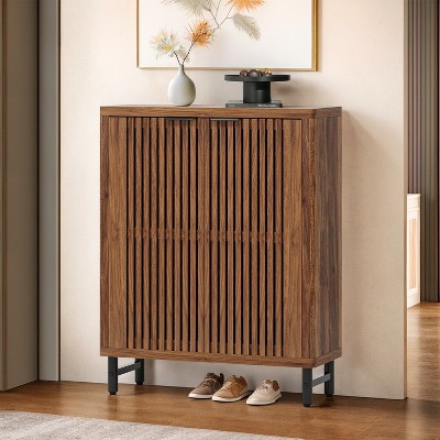 Shoe Cabinet with Bench, Farmhouse Narrow Slim Shoe Storage with 2 Flip Drawers