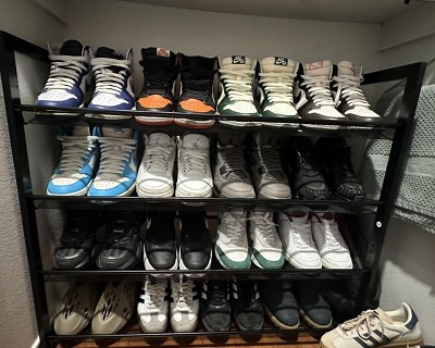 - Set of 2 stackable 4 - tier shoe shelves that can be combined for an 8 - tier shoe organizer or used separately in different locations.
