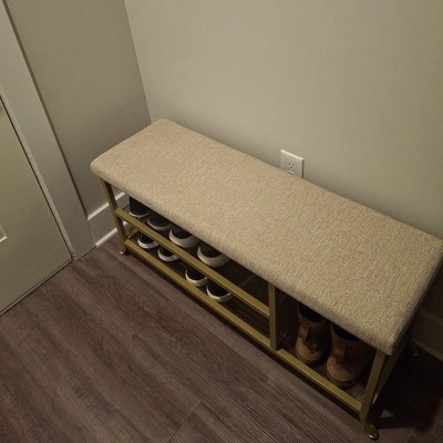 Shoe Storage Bench with Padded Seat, Shoe Rack Bench for Entryway, Shoe Storage Shelf with Metal Frame, 2-Tier Shoe Organizer for Bedroom Living Room