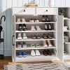 - Say goodbye to shoes scattered around your home and messy entryways. This shoe cabinet for entryway offers ample hidden shoe storage, keeping your space tidy and your shoes dust-free—perfect for busy families or shoe lovers seeking a neat home