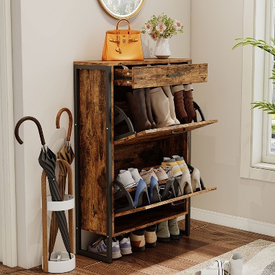 Shoe Storage Cabinet with 3 Flip Drawers, Rattan Hidden Freestanding Organizer with Adjustable Shelves