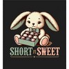 Add a sweet touch to your wardrobe with this crew neck short sleeve apparel, featuring a stuffed bunny holding a box of chocolates above playful "Short n Sweet" text in pink and green. Made from high-quality materials, this apparel offers both comfort and durability for everyday wear. Easy to care for, simply machine wash it on cold with like colors and tumble dry on low heat to maintain its vibrant design.
