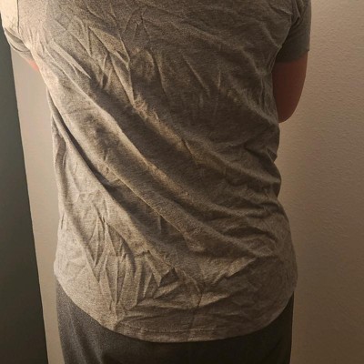 [This review was collected as part of a promotion.] I got this in a size small and there's plenty of room to grow ! I liked how the bottom of this shirt was kind of a scooped material so it covered the bottom nicely. Which I always like as well as the coverage it offered in the front. The material was also so very nice. It felt very nice and airy and light. Which is what I love. Its overall a very comfortable shirt and I would recommend I received an incentive to write this review.
