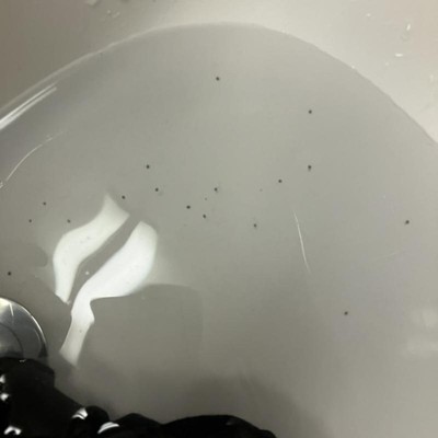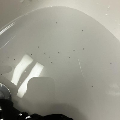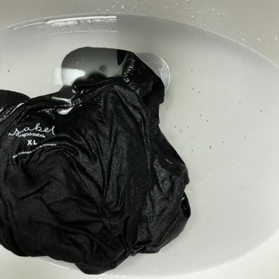 Fading color and black dots all over as I always wash brand new items especially dark colors separate in the sink for a very first time. This is terrible whatever they add to that black and black fabric you need to change it ASAP.
