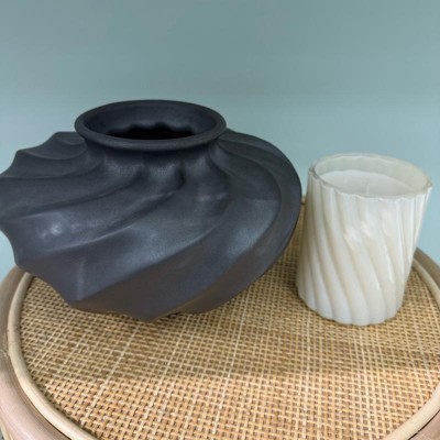 [This review was collected as part of a promotion.] This space is so cute. It has a nice thick, heavy quality to it. It looks very expensive. It will look good on my entryway table along with another vase. It’s larger. It’s short and round the only negative I would say about this face as I was looking for a true black and this is more like a shimmery black but overall, I recommend the high nice quality decorative piece