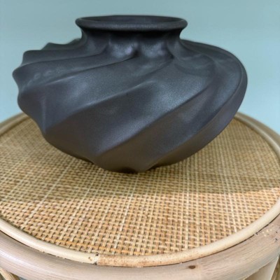 [This review was collected as part of a promotion.] I love the shape and the style of this vase and the quality is wonderful. I’m a little iffy on the color. The color is not a true black and I was looking for a true black you can see in the pictures. It’s absolutely gorgeous, but it’s just not exactly what I was looking for because it’s not a true black and almost has like a shimmery silver look to it.