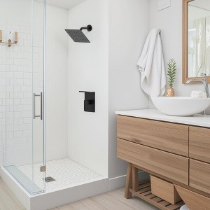 - Modern design: 8-inch square shower head with a minimalist look and built-in storage.