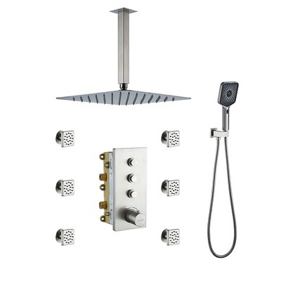 - 3-in-1 Shower Experience Rainfall + handheld sprayer + adjustable modes 18.43 lbs wall-mounted system