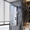 TruAIR 5-in-1 Shower Panel Tower ¨C Brushed Finish with LED Temperature Display, Rainfall & Handheld Shower for Luxury BathroomKey Features:5-in-1 Multi-Function SystemIncludes rainfall shower, waterfall shower, 2 body massage jets, 3-function handheld shower, and bathtub spout for a spa-like experience.Smart LED Temperature DisplayHydraulic-powered LED shows real-time water temperature; prevents scalding for safe, comfortable bathing.Premium 304 Stainless SteelBrushed finish resists fingerprints/rust; brass valve and PVC pipes ensure durability and leak-proof performance.Easy Wall-Mount InstallationG 1/2" interface compatible with existing plumbing; includes detailed instructions for quick setup.Intuitive Dual-Knob ControlTop knob selects shower mode, bottom adjusts temperature/flow; silicone nozzles prevent clogging.Specifications:Brand: TruAIRColor: BrushedMaterial: 304 Stainless Steel/BrassInstallation: Wall-mountedIncluded: Panel, handheld shower, manual
