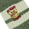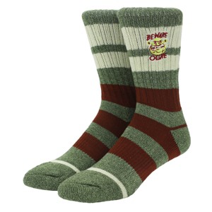 Enjoy your favorite movies in comfort with these Shrek athletic camping crew socks. The socks come in green with brown and white stripes and feature embroidered art of Shrek's face while brown letters spell out, "Beware Ogre." The socks feature a thick polyester spandex knit and come with cushioned footbeds and arch compression for extra comfort and support. The socks fit a sock size of 10-13 and a shoe size of 8-12. Shrek fans will love these cozy crew socks.