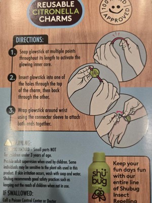 Cute idea but I'm not 100% sold on the effectiveness of the product. The Citronella scent is overwhelming. I had the package at my desk and I could smell it without even opening the package. I had to take the trash out of my office because it was giving me a headache. That being said, it's probably good news for how far the scent reaches outside. The glowsticks did not glow at all. I actually wasn't surprised since every glow stick I've ever bought has been packaged in black and not just fully exposed like these. The glow stick was a big part of the fun but overall we wanted to be protected from mosquitos. My daughter tried to wear the charm on her wrist but the glowstick was too big and it kept slipping off her hand. She looped it on her belt buckle instead. We went out and walked a little over a mile in total and happy to report my daughter came back with only one mosquito bite. It's on her eye which means my five foot tall - 10 yr old needed a bit more protection than these offered. Perhaps they only work in a 2 foot radius... I don't know. I think these work but I think they're best for shorter children and I don't think they would cover an adult. Unless you use two. I also think the scent could be too strong for kids with allergies or sensitivities to scents. The last bit is that the glow sticks didn't glow and also were too big for my 10 yr old so are definitely way too big for a smaller child. I put it on my own wrist and it was a perfect fit