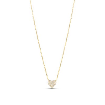 SHYMI Scattered Stone Puffy Heart Necklace — .925 Sterling Silver, 14k Gold-Plated, Cubic Zirconia Detailing, Adjustable Chain