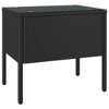 - This modern rectangular side table¡¯s all about looks and handy functionality, perfect for sprucing up indoor and outdoor spaces. Made from high-quality poly rattan and tempered glass, its bold black finish and clear top add a touch of class to living rooms, bedrooms, or hallways. It¡¯s spot on for serving tea or coffee or simply for showcasing decorative items alongside your fave seating. Chic Design: The sleek black color fits right in with all sorts of decor styles, giving any space a smart touch.Weather-Resistant: Made to take on outdoor conditions, so it stays strong all year round.Easy to Clean: Smooth surfaces make for quick and easy upkeep, keeping it looking sharp.Space Efficient: Compact dimensions mean it works well in tighter spots without losing style.Robust Frame: Made from powder-coated steel for a strong base that stands up to daily use and extra weight. Color: Black Shape: RectangularMaterial: Synthetic Poly RattanFinish: Powder-Coated Indoor/Outdoor: Indoor / OutdoorCover Included: NoRoom: Living RoomCapacity: Perfect for holding small stuff like tea or coffee suppliesDimensions: 14.6 x 20.9 x 18.9 in (W x L x H)Surface Height: 0.2 inLeg Height: 18.9 inWeight: 13.45 lbsDelivery Contains: 1 TableAssembly Required: YesRecommended Number of People for Assembly: 1