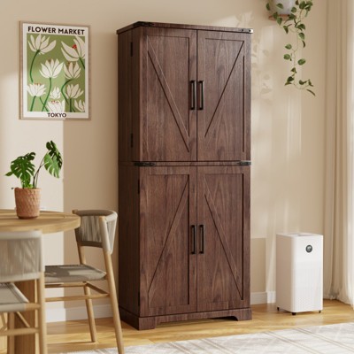 Sideboard Buffet Cabinet with Storage, 34" Tall Modern Arched Cabinet with Adjustable Shelves, Wooden Coffee Bar for Living Dining Room, Brown