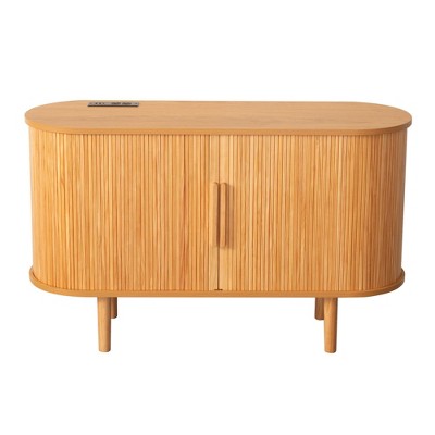 - 【Elegant Oval Shape Design】The oval sideboard create a sleek and refined look, with two side compartments featuring adjustable shelves to maximize storage.