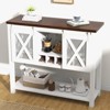 Wine Bar Cabinet with Sliding Barn Door - Elevate your living space with this versatile and stylish wine bar cabinet. Crafted from high-quality MDF wood and sturdy metal, it offers durability and a scratch-resistant, waterproof top surface that is easy to maintain. Measuring 46.5" L x 39.3" H x 15.7" W, this cabinet is designed to hold up to 9 bottles of red wine with its detachable wine rack and includes a removable wine glass holder for 6 glasses, combining functionality with elegance. Sliding Barn Mesh Door - Features a charming sliding barn-style mesh door that conceals additional storage space, keeping your items organized and out of sight. Open shelves provide the perfect spot to display decorative items or small appliances, blending seamlessly into your living room, dining room, or kitchen. Multi-Purpose Use - This cabinet is not just a liquor bar; it adapts effortlessly to your needs. Use it as a dining sideboard, coffee bar, TV stand, or entryway console to add a touch of modern elegance to any room in your home. Sturdy Construction with High Weight Capacity - Built to last, this cabinet supports up to 500 lbs, ensuring it can handle your storage needs while maintaining stability and safety. Easy Assembly - Comes with clear instructions and labeled components for quick and hassle-free setup, so you can start enjoying your new wine bar cabinet without delay. Enhance your home with this elegant and functional wine bar cabinet that blends storage, style, and versatility all in one piece. Perfect for wine enthusiasts and those looking to add a sophisticated touch to their living or dining area.