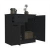 This dresser is an excellent solution for anyone needing extra storage in a limited space, as its compact design allows it to fit easily into any room without occupying much floor space. Featuring a single drawer measuring 5"H x 14.6"W and double door cabinets, it provides ample storage for clothes, linens, and other personal items. Stylish handles on both the drawer and cabinet doors add a touch of elegance while ensuring easy access to your belongings. The dresser’s smooth finish is simple to clean and maintain—just wipe with a damp cloth to keep it looking new. Please note, decor and setting objects are not included.