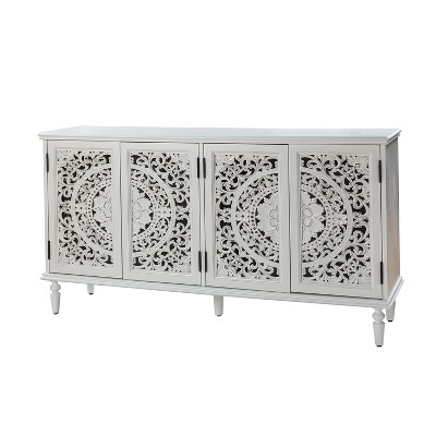 - [Classic Design] This buffet cabinet features a smooth sticker finish and framed doors that add a touch of beauty and modernity. It is designed with uniquely patterned knobs, which makes this buffet looks much more unique and retro.