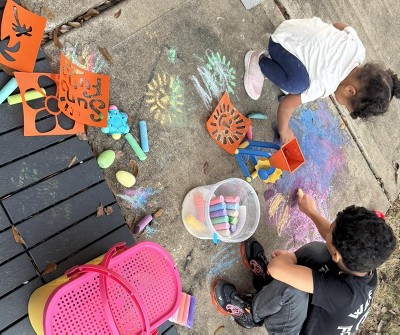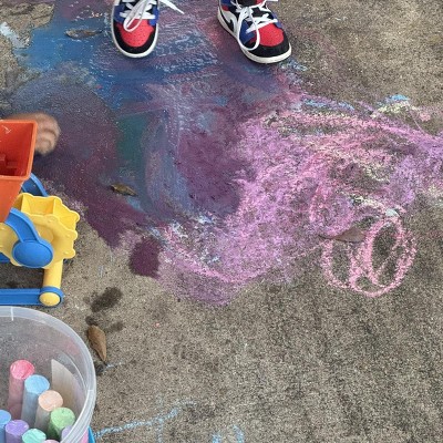 My kids love drawing with chalk all summer long. This bucket came with a wide variety of chalk colors to use, as well as some fun stencils and accessories. Having so many options has really brought creativity to my kids designs. The only minor drawback is that the tie dye chalk was hard to see on our lighter concrete.