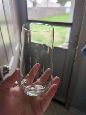 [This review was collected as part of a promotion.] These are 16 oz upright glasses with a thick base which adds stability. They are dishwasher safe with a one year warranty. These highball glasses are nice looking, simple and modern.