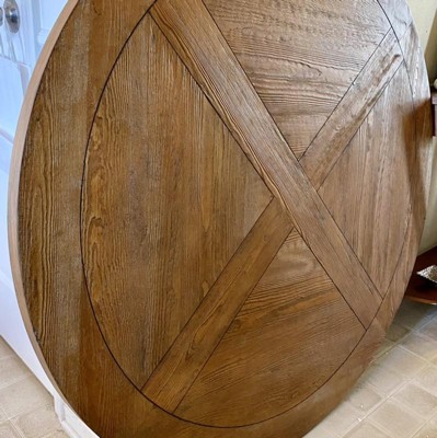 The other reviewer is correct, the top and base do not match very well. The top is quite a bit darker than the photos shown. That said, I had a hard time finding a large round coffee table (in stock). There is a comparable (possibly same) table on Wayfair and other sites for $300 more. My table arrived with some damage. Despite all of the above, I ended up keeping the table because Target customer service did work with me to rectify the damage issue, and I love the size and overall look.