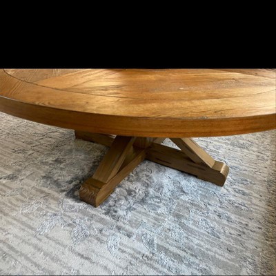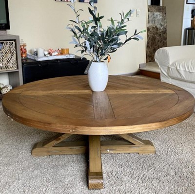 Sierra Round Farmhouse Pedestal Base Wood Coffee Table Vintage Wood - Inspire Q: 48" Diameter, Pine Frame, Wood Veneer Top