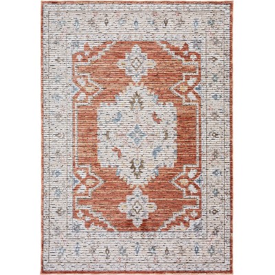 Elevate your living space with the elegant charm of a traditional style area rug. Measuring 5 x 8 feet, this piece offers a generous size ideal for defining spaces or adding warmth to any room. The subtle ivory and rust tones blend seamlessly, creating a welcoming ambiance. Crafted in Turkey with a thoughtful blend of 78 percent polypropylene, 14 percent cotton, and 8 percent latex, this rug is power loomed to ensure a smooth texture and notable durability. Its medium rectangle shape and quarter inch height make it a versatile addition, fitting under furniture with ease. With no pattern, this rug enhances your decor while letting other elements shine. Transform your home into a haven of style and comfort with this exquisite rug, and experience the art of timeless design.