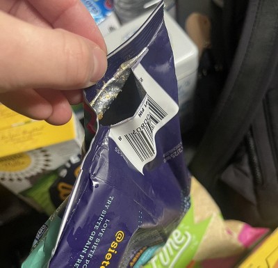 So disappointed target--these chips are a 5 star but the package was open and spilled i to the box. As you can see in the photo my wheat thins box was open as well.