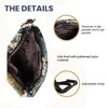 - Fitted with an adjustable (up to 22 inches) and buckled faux leather shoulder strap