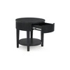 Classic and cool in dark charcoal, this end table brings contemporary convenience to your living room. Short on storage? The trendy reeded apron conceals a drawer perfect for remotes, controllers and other entertainment accessories. What a perfect marriage of style and functionality.