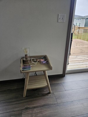 Great side table for a nursery! USB charger is great for late night feedings. Plenty of space for a storage bin below. Very sturdy, love the neutral color of this.