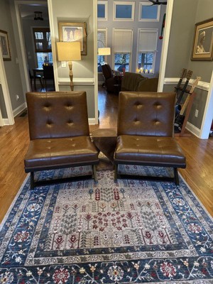 Guests appreciate the stylish design and comfort of these chairs, making them a great addition to various living spaces. Many find them easy to assemble and value their affordability compared to genuine leather options. However, some guests have noted concerns about durability and a strong chemical odor upon arrival. Overall, these chairs offer a blend of aesthetics and functionality, suitable for both casual and formal settings.