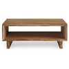 Elevate your living space with the Dressonni coffee table, where modern minimalism meets natural wood beauty. This 46-inch rectangular centerpiece showcases the stunning grain patterns of premium sheesham wood, enhanced by a clear wood-tone finish that lets the natural character shine through. The thoughtfully designed lower shelf provides both storage functionality and a sophisticated display space, making this table as practical as it is beautiful.