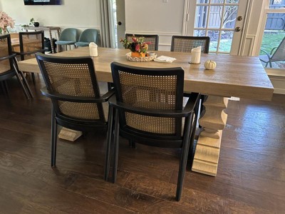This dining arm chair brings a rustic vibe to urban contemporary design. It’s a modern approach to natural beauty, with a faux cane backrest incorporating eye-catching texture. And the chair’s color palette is stunningly simple, allowing it to coordinate seamlessly with your existing decor.