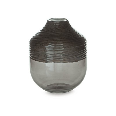 Add shimmering elegance to your home with the Harpwick Decorative Vase, an 8.25-inch blown glass piece featuring an iridescent gray finish with a hand-carved, patterned top. Perfect for tabletops, shelves, and small displays.