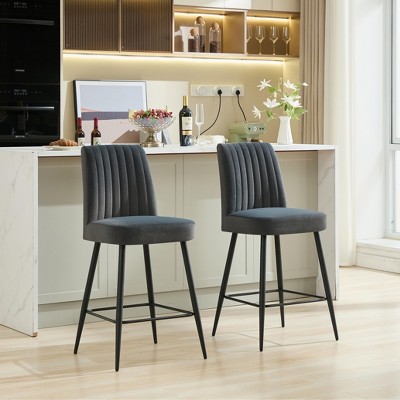 Signature Design by Ashley Zendalia Upholstered Counter Height Bar Stools - Set of 2, Mocha Brown Velvet with Channel Stitching