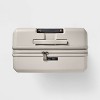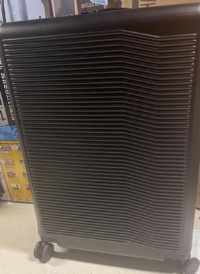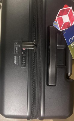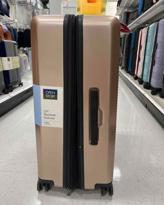 Bring convenience to business or leisure trips by packing your belongings in this Signature Hardside Large Checked Spinner Suitcase from Open Story™. This 11.8 lb. hardside suitcase features a full zip-around closure and it features a TSA lock for keeping the contents secure. The interior features a zipper compartment with a generous mesh zip pocket on one half and an interior compression panel that allows you to pack more items. Designed with four spinner wheels, this large checked suitcase features a telescoping aluminum handle for smooth handling and gliding. Plus, a top and side handle let you carry it just the way you like. Removable Compression Pad. Packs more in with an extra sleeve for added organization.
