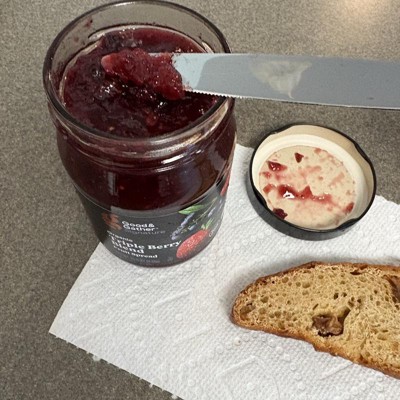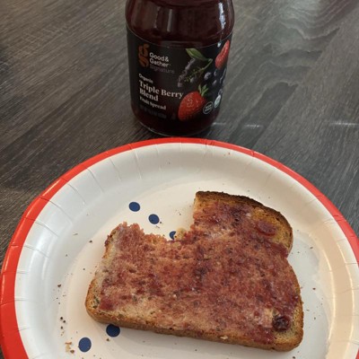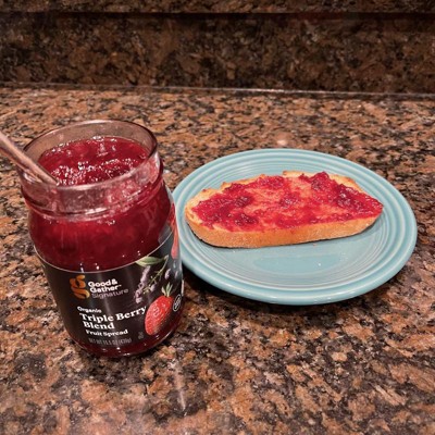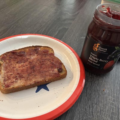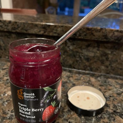 This Signature Organic Triple Berry Fruit Spread from Good & Gather™ is perfect for spreading on toast, swirling into yogurt or adding a sweet touch to your favorite desserts. USDA organic and non-GMO, this fruit spread contains no artificial flavors, synthetic colors, high fructose corn syrup or artificial sweeteners.