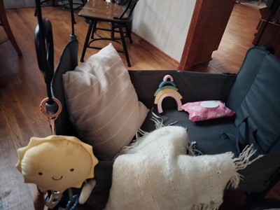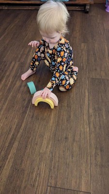 This toy could double as a nursery decoration because it's so cute. My baby likes to take each arch off the top. The arches can be turned over and rocked. I like that this is easy to clean after being played with.