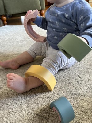 The quality of this toy is top tier! It is so durable and my little guy loves to stack it. The colors are perfect! Love the different texture elements too! The one downfall is because of the silicone material if you have pets hair will stick to it!