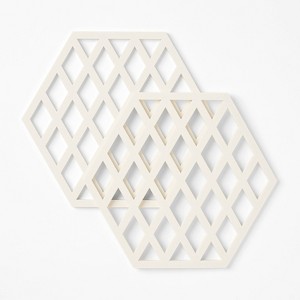Ensure safety while cooking with this 2-Pack Silicone Trivet Set from Figmint™. Made of silicone, these hexagonal trivets act as a barrier between hot pots or pans and kitchen surfaces to protect your tables and countertops. Designed in a solid color, they add versatile style and practicality to your kitchen.