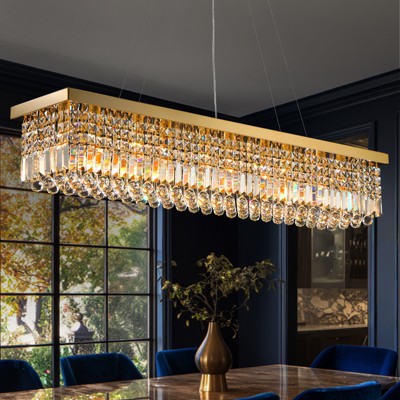 Siljoy 31.5 Inch Modern Crystal Chandelier, 6-Lights Rectangle Chandelier Rectangular Flush Mount Pendant Ceiling Light Fixture for Indoor (Gold)