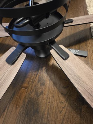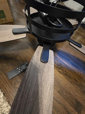 This Farmhouse style ceiling fan has great color! I love the reversible blades, wood or black. I chose the wood to show. The hardware is a matte black. The blade size is just right for my son's bedroom. The instructions were easy to follow. The best part was that this has a remote, great for my son to easily change the speeds. This replaced our old fan that had sconces. Our junction box caused an installation issue to where I will have to reinstall after repairs. The fan was easy to take back down, much easier than older models. It's worth the updated style to me!