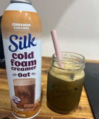 - BARISTA QUALITY AND PLANT-BASED CREAMER: One 14 oz can of Silk Cinnamon Caramel Oat Cold Foam Creamer