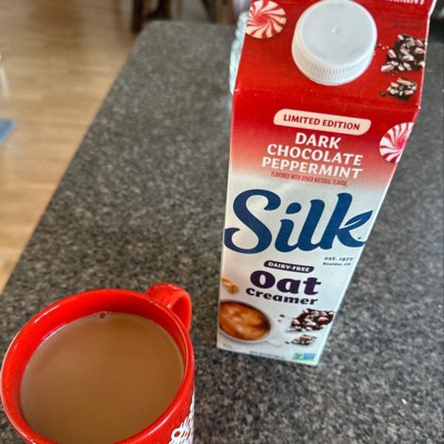 - LUSCIOUSLY CREAMY, LIMITED TIME ONLY: One 32 fl oz Silk Limited Edition Dark Chocolate Peppermint Dairy Free, Gluten Free Oat Creamer Carton