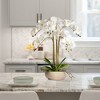 Infuse your space with the grace and beauty of this exquisite artificial orchid arrangement. Standing at 22.83 inches, this stunning piece captures the delicate elegance of real orchids, enhanced by vibrant, lifelike leaves. Nestled in a modern, minimalist ceramic pot, this arrangement brings a touch of nature’s tranquility into your home or office without the hassle of upkeep. With its soft white blossoms and lush greenery, this sophisticated centerpiece is the perfect accent for any interior, radiating serenity and style all year round.